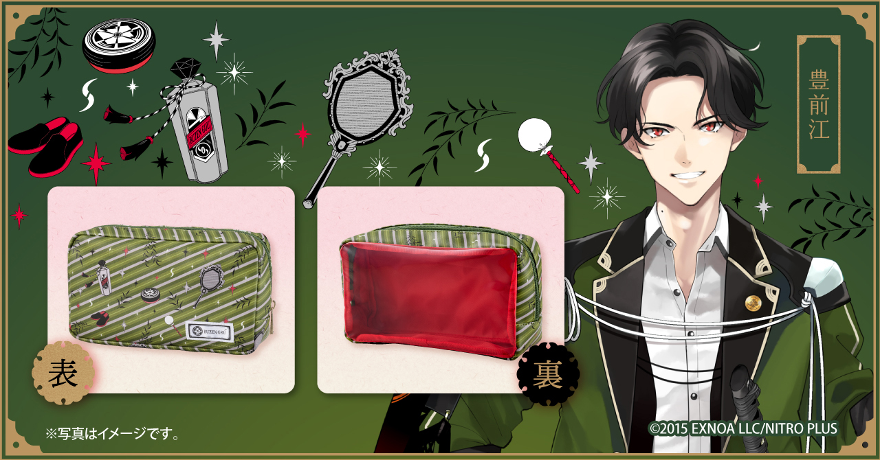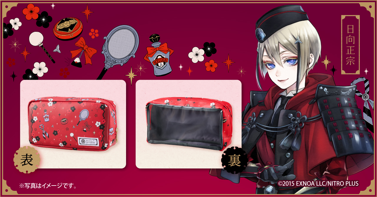 刀剣乱舞ONLINEの刀剣男士をイメージしたコラボ商品3種が数量限定で登場です。第2弾となる今回のラインナップは、日向正宗、鶴丸国永、豊前江の3振りの刀剣男士たち。彼らをイメージしたオリジナルデザインポーチと菊正宗の人気化粧水がセットになりました。